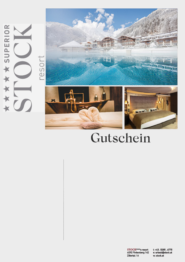 • Wellnessgutschein im Wert von € 50,00 pro Person für weitere Verwöhnbehandlungen im STOCK Diamond SPA